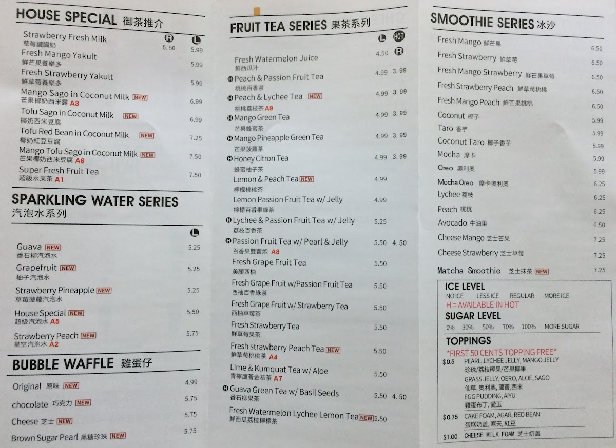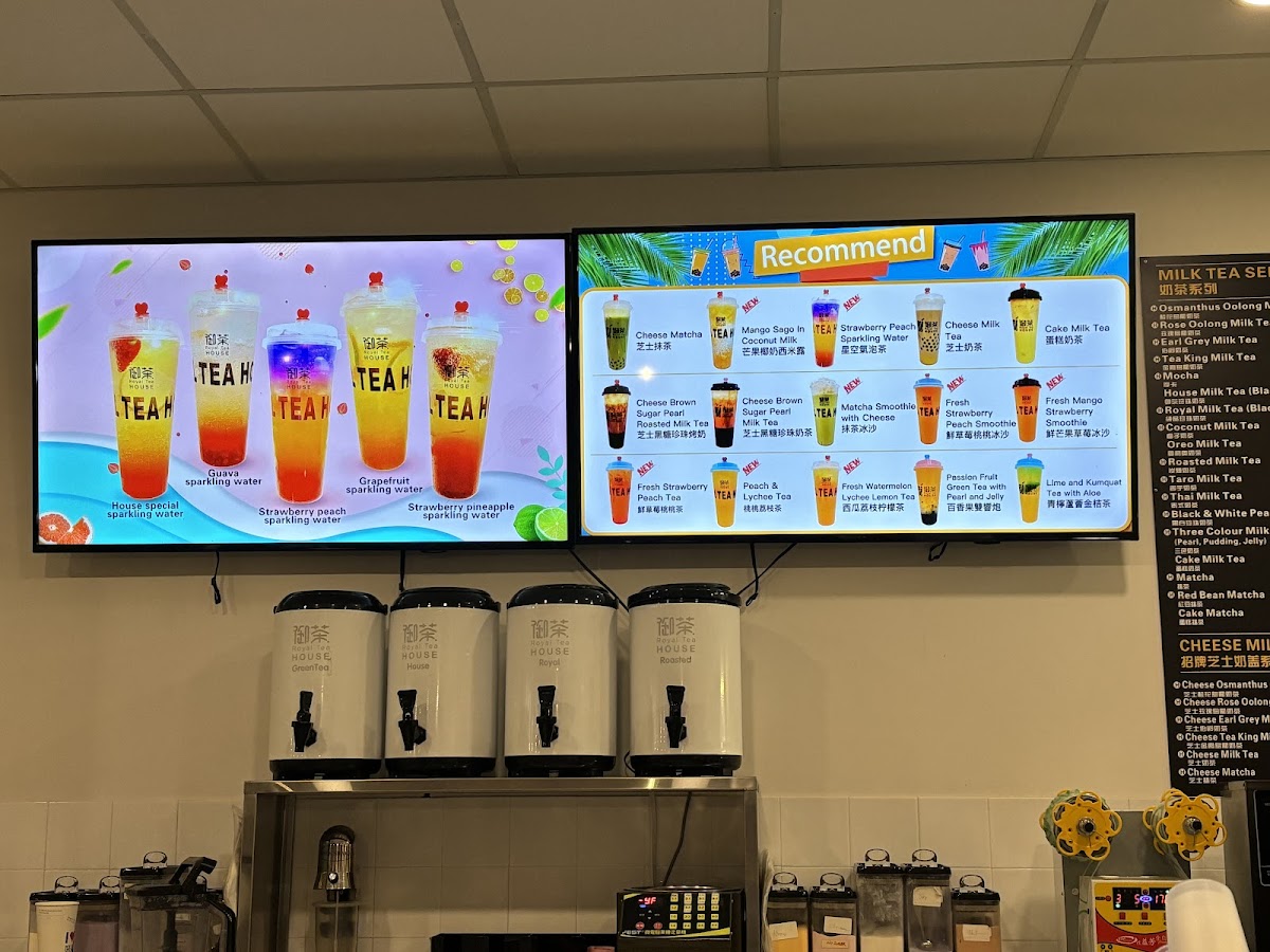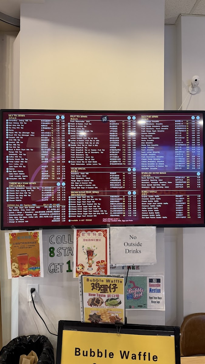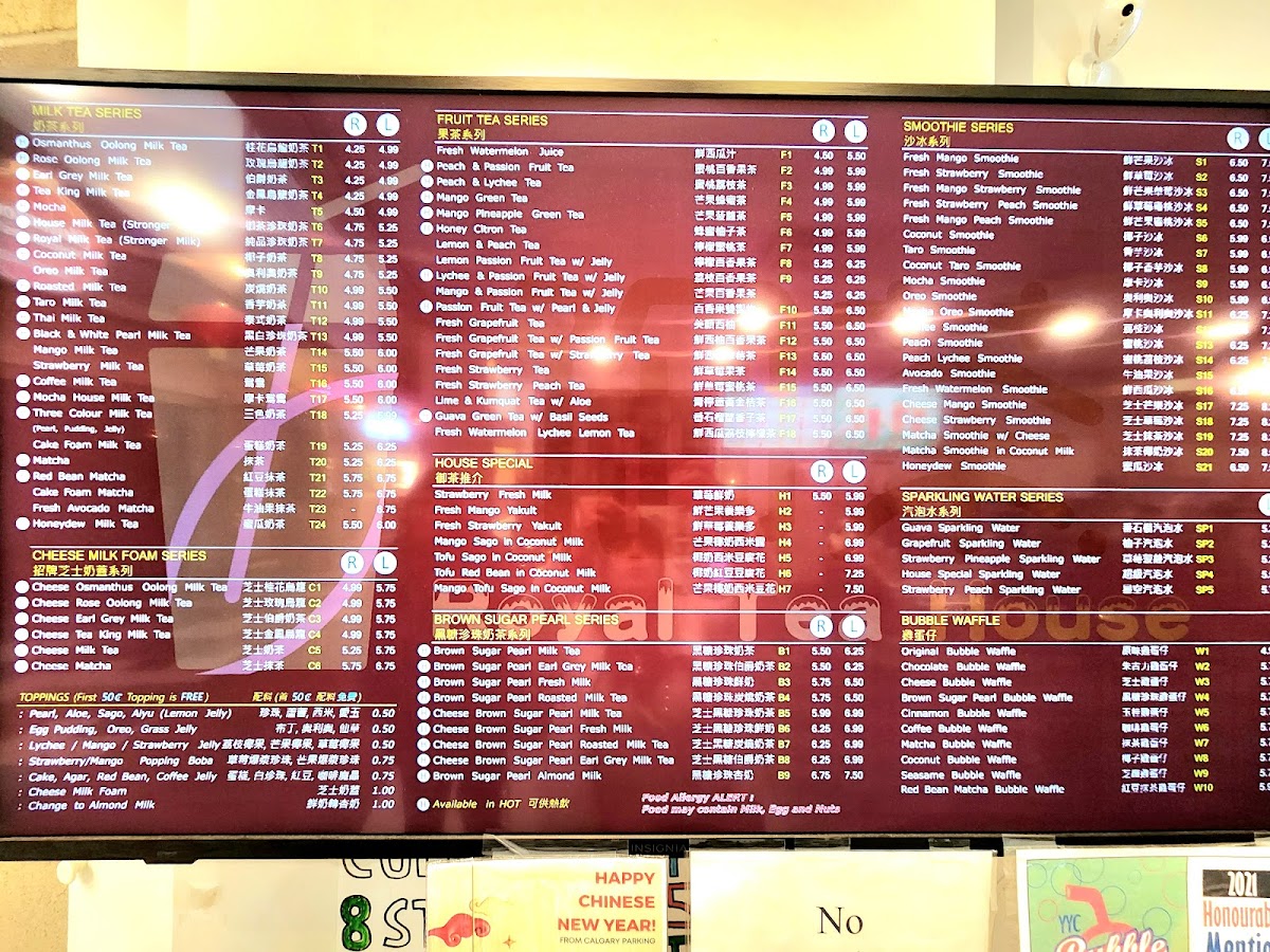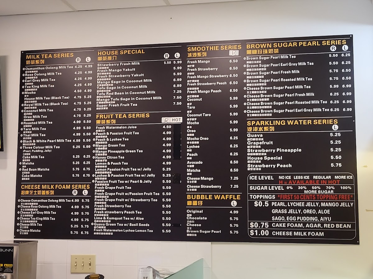 The menu at Royal Tea House features a variety of bubble tea and café-style beverages, structured into several distinct categories to suit different tastes and preferences. Visitors can explore a broad selection of fruit teas, each crafted with fresh ingredients and available in combinations such as Watermelon Juice, Peach & Passion Fruit Tea, and Mango Pineapple Green Tea. These are typically light and refreshing options suitable for casual sipping.